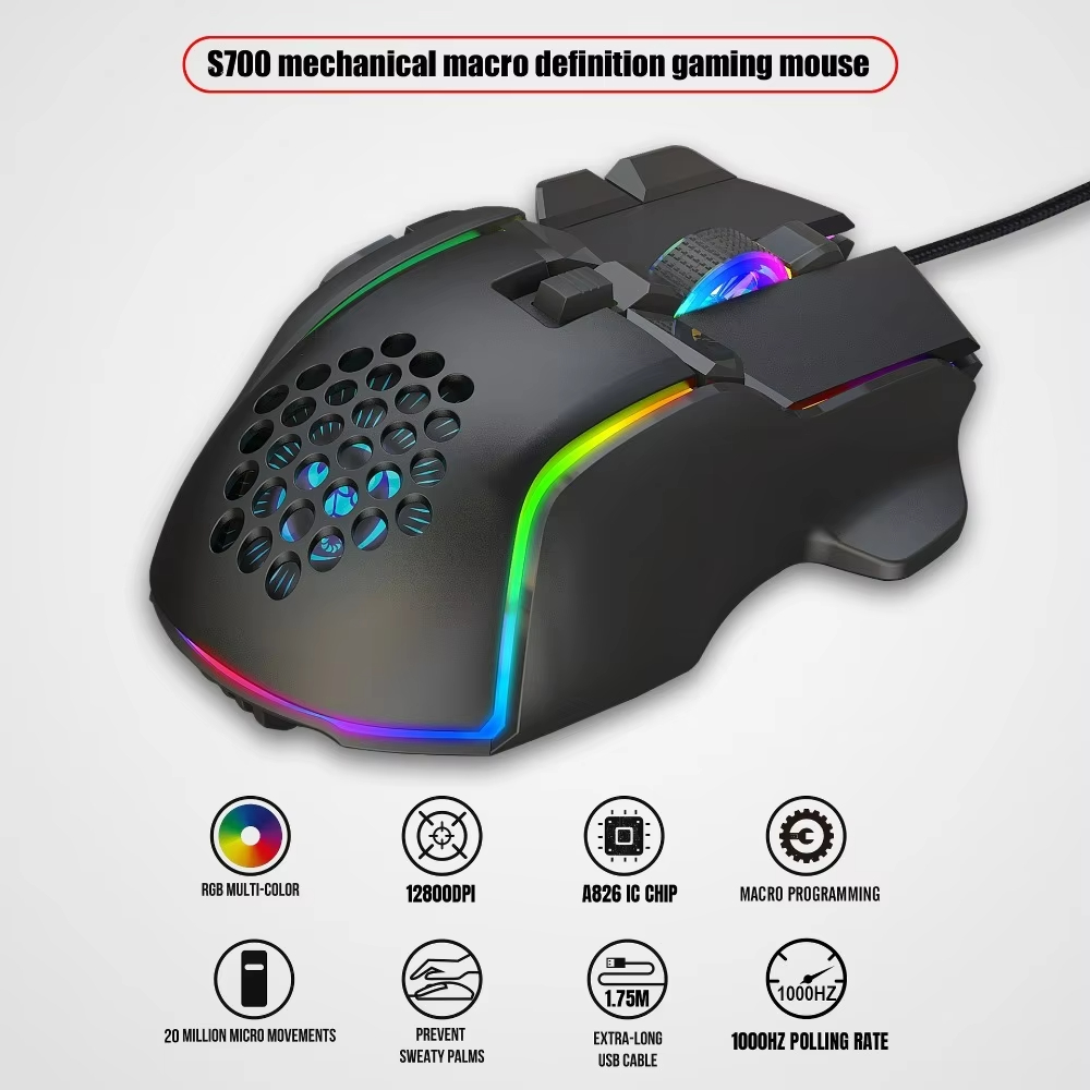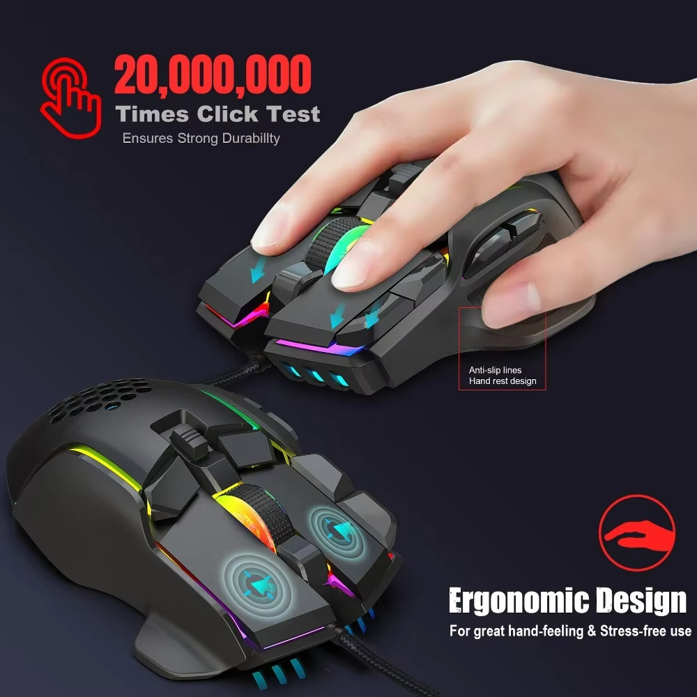 • 10 Buttons 12800 DPI USB Wired Gaming Mechanical Mouse